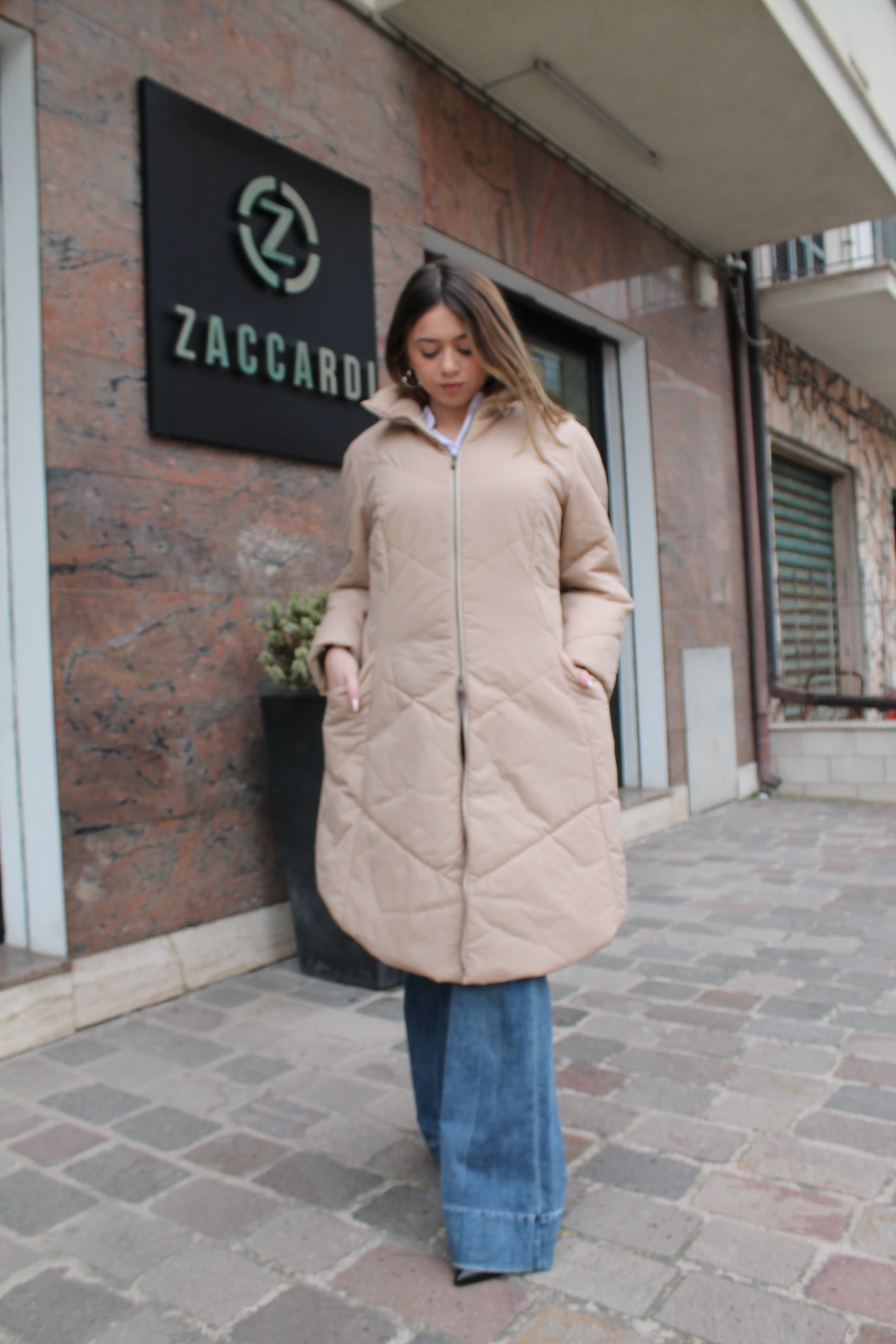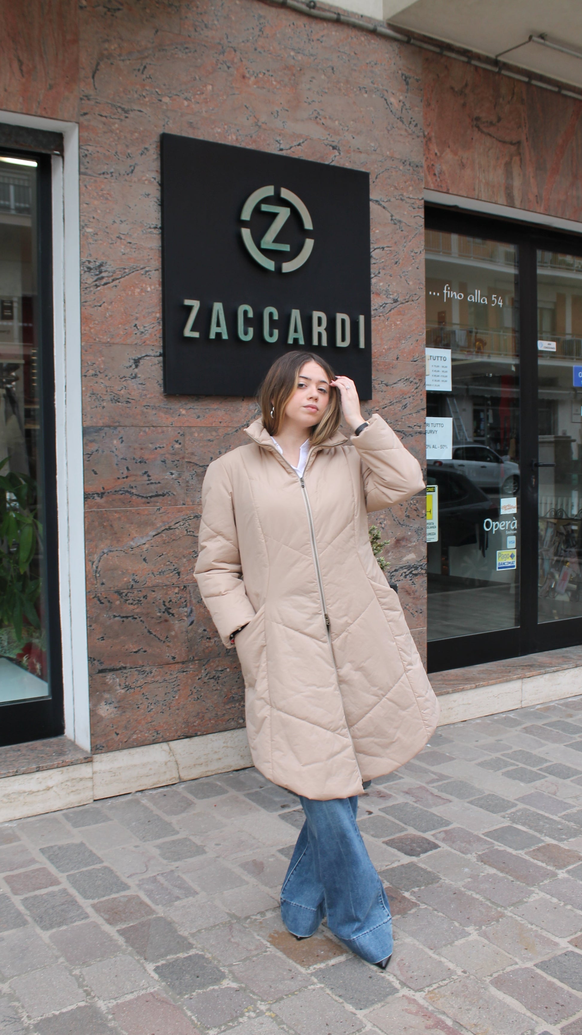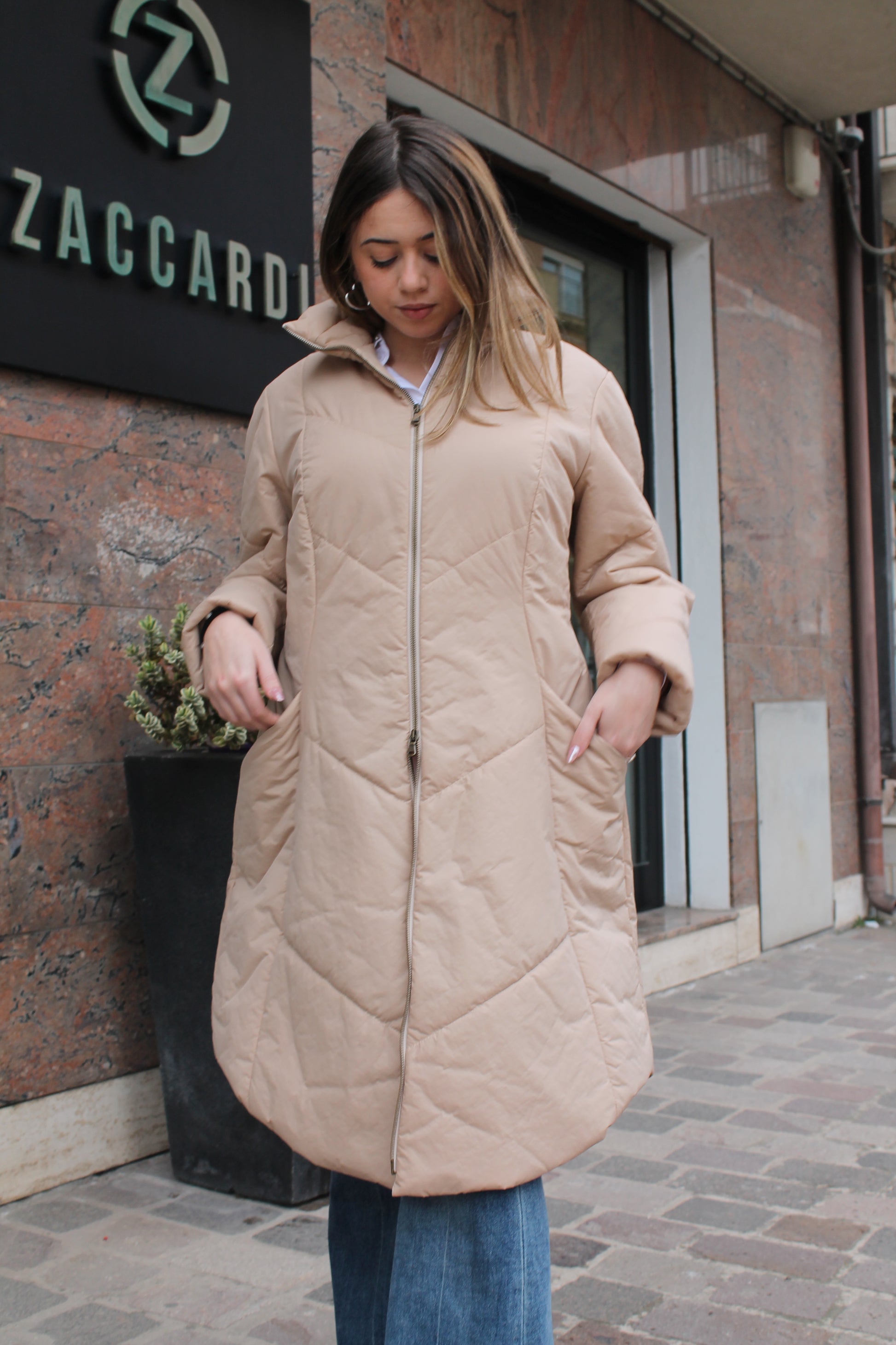 Questo piumino è un capo di abbigliamento elegante e versatile, perfetto per affrontare le giornate più fredde con stile. È caratterizzato da una tonalità beige chiara, sobria e raffinata, ideale per abbinamenti sia casual che più ricercati.